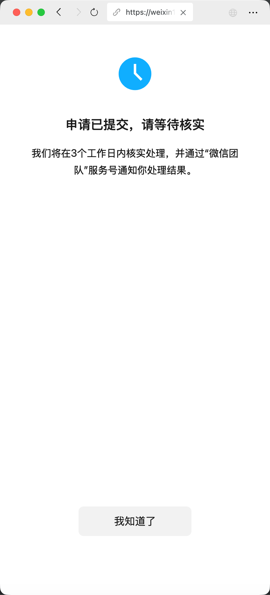 然后返回微信进行验证,验证无误继续提交证明材料。