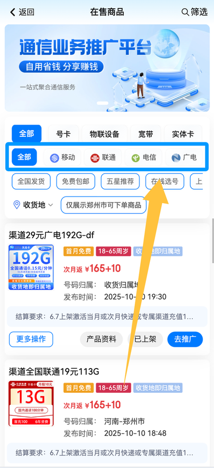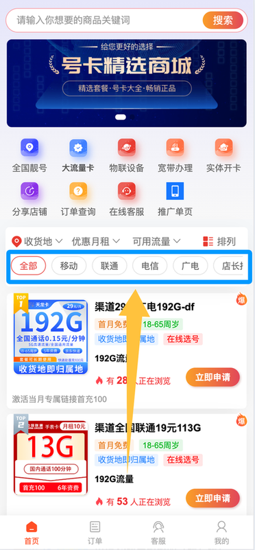 • 为了提供更加方便商品选择,系统默认内置了四大运营商分类。你也可以添加新的分类来满足不同商品的需求