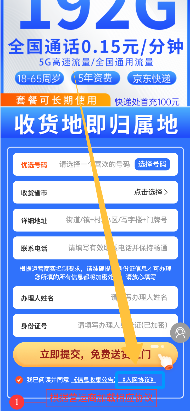 • 默认分类在用户下单页,会自动识别运营商协议类型,并展示相应的协议内容